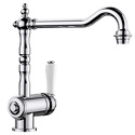 Назначение: кухонный • Конструкция: однорычажный • Монтаж: горизонтальный • Клапан: керамический • Материал: покрытие - хром • Монтажные отверстия: 1 отверстие диаметром 35 мм • Форма излива: традиционная • Душевая лейка в комплекте: нет • Донный клапан в комплекте: есть