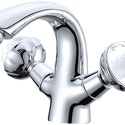 Тип: для умывальника, двухвентильный • Монтаж смесителя: настольный • Струя: высота 86 мм, глубина 116 мм