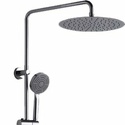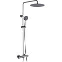 Устройство: душевая система • Смеситель: термостатический • Ручная лейка: размер 110 мм, настройки 5 шт • Верхний душ: размер 300 мм, настройки 1 шт • Комплектация: лейка, смеситель, стойка, шланг, крепление лейки