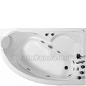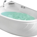 Материал: акрил • Расположение: отдельно стоящая, угловая конструкция • Форма: нестандартная • Количество мест: одноместная • Гидромассаж: есть, 5 форсунок • Подсветка: есть • Комфорт: подголовник • Смеситель в комплекте: есть • Размеры (ДxШxВ): 150x100x54 см