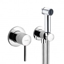 Гигиенический набор Kludi Bozz 389980576 4 в 1 Описание: • встраиваемый смеситель для душа: • внутренняя часть и внешний элемент • гигиенический душ с кнопкой включения воды • не предназначен для длительного перекрывания воды • душевой шланг G 1/2 x G 1/2 x 1250 мм • соединение для шланга с настенным • держателем для душа DN 15