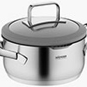 В наборе: кастрюля, крышка • Размер: до 20 см • Объем: до 3.2 л • Материал: сталь